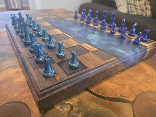 Metallic Blue & White Chess Board